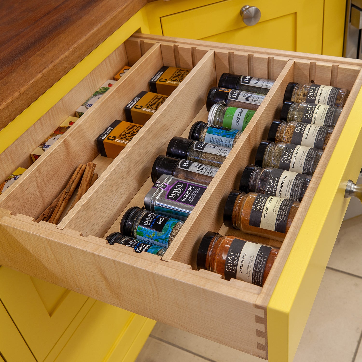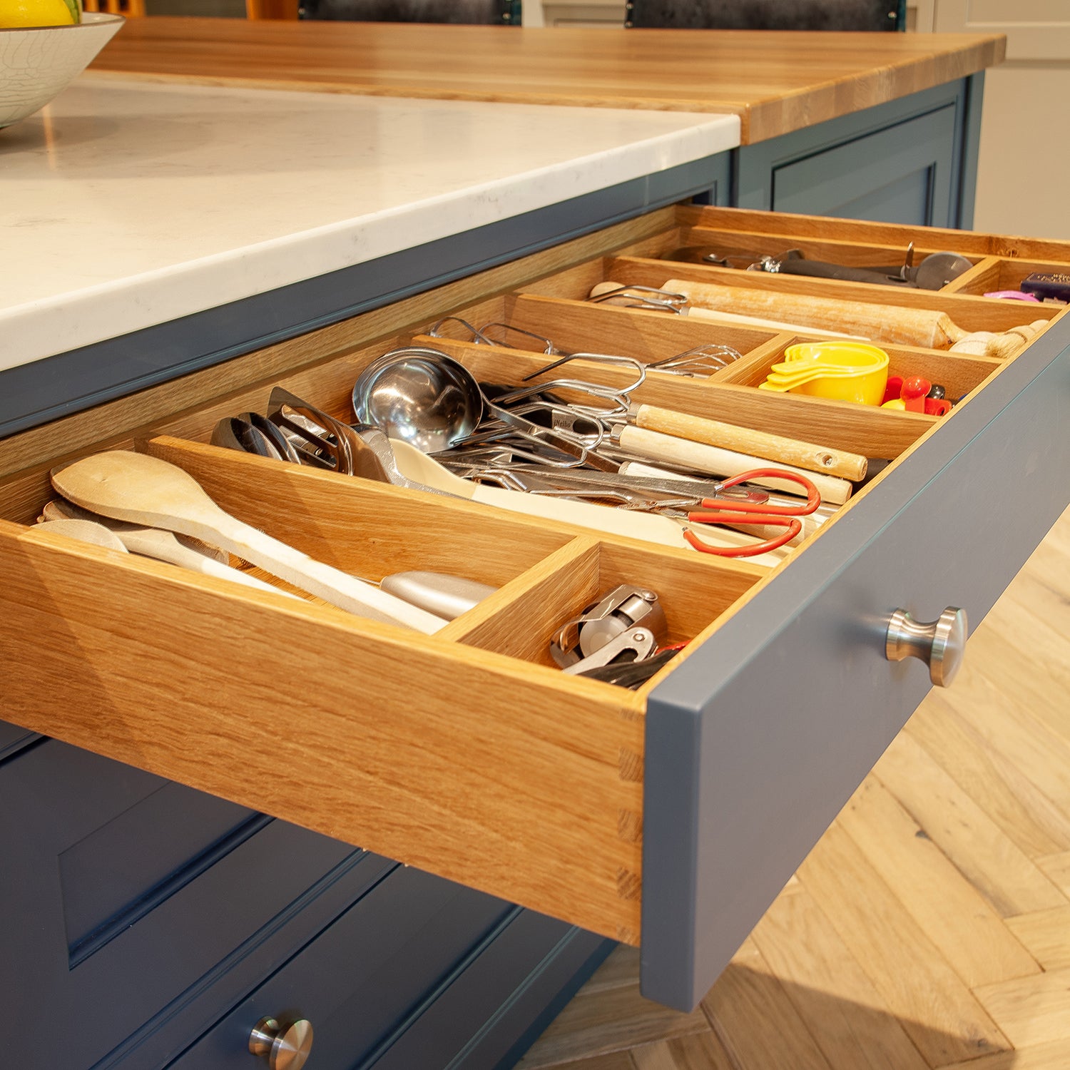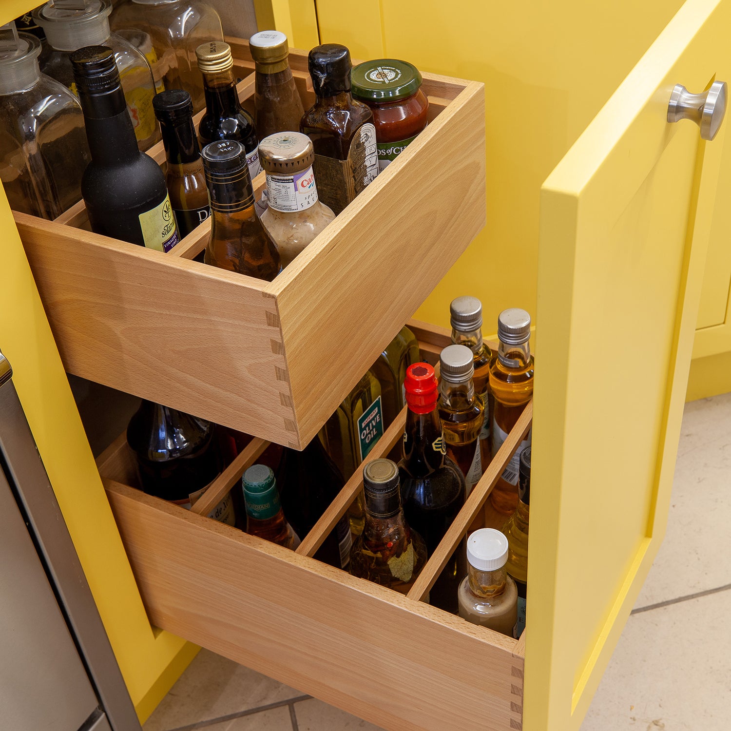We’ve been developing a vast range of clever and incredibly useful accessories and inserts to go with our kitchen furniture for many years now. Whatever your requirements for your kitchen are we will have some innovative solutions to suit, be that a built in rack for your chopping block or one of our many pull out storage systems. When discussing an upcoming project with one of our designers you can explore the many options that you might include, until then please have a browse of the selection below.