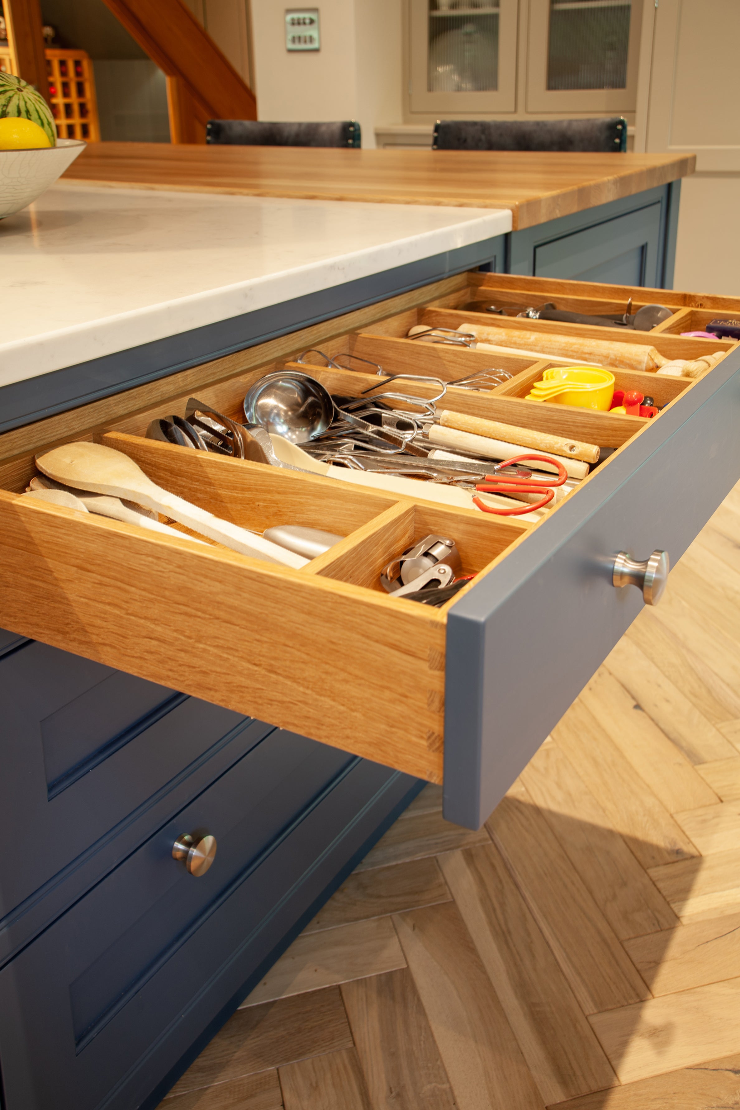 Our take on framed up furniture is, and always has been, as proper as it is possible to be. Instead of modular units of standard sized cabinets with their own individual frame butting up against another, we use a continuous frame across the front of our custom sized cabinets optimising the internal cupboard space far more efficiently. A truly bespoke system, our Traditional English Framed range demonstrates the real value that a made to measure construction permits, whilst exhibiting true attention to detail, materials of the highest quality and un-compromising design and craftsmanship